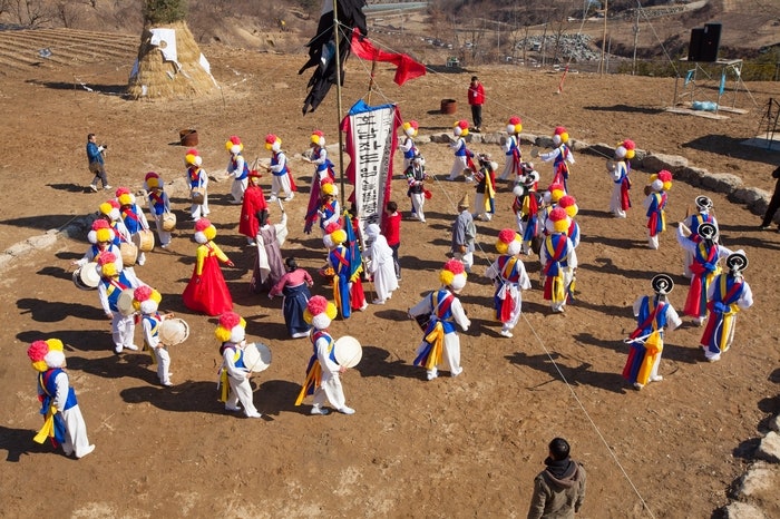 91 | GC_dca26aa7_bd_0 | 이미지에서 보이는 이 전통 공연은 한국 농촌 공동체의 협력과 단합을 상징하는 의미를 담고 있다. | ["\uc608", "\uc544\ub2c8\uc624"] | 예 | images/Greater_Community/농악놀이_003_30d146bd.jpg | 농악놀이 | Greater Community | The traditional performance seen in this image symbolizes cooperation and unity within Korean rural communities. | 이미지에서 연주자들이 협동하여 악기를 연주하고 춤을 추는 모습은 실제로 한국 농촌 지역에서 마을 사람들의 결속과 화합을 강조하며 진행되던 대표적인 문화입니다. | 4w2gtkf0 | Annotator 3 | 3 | 5 | 5 | Nongaknori | yes | yes | correct | 5 | {"violence": false, "offensive": false, "misinformation": false, "privacy": false} | {"photo": false, "illustration": false, "infographic": false, "screenshot": false} | {"specificEra": false, "specificEraText": "", "imageMayChange": false, "questionMayChange": false} | 2026-02-05 06:52:32.739710 | 2026-02-05 06:52:32.739712 | easy | no | |||